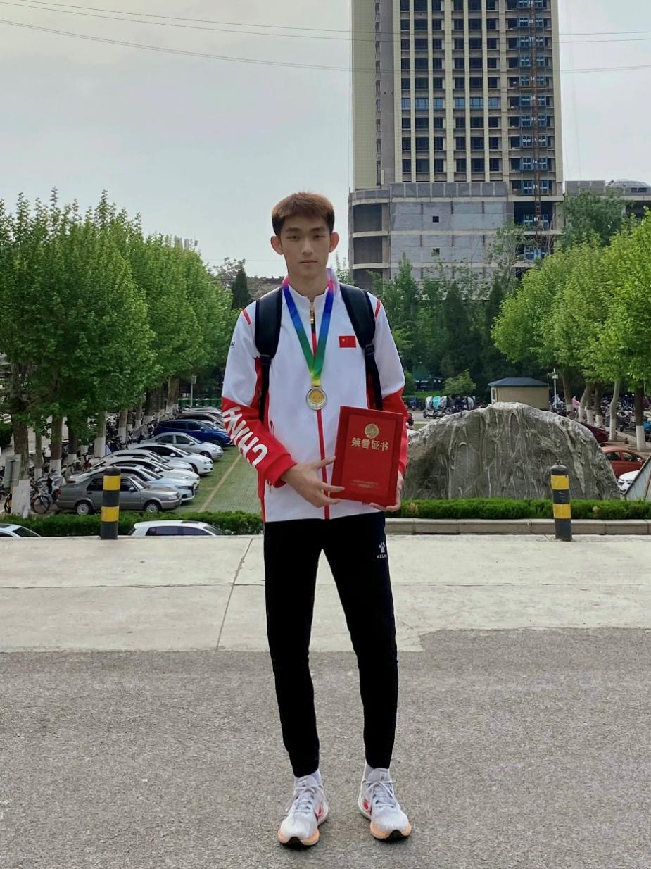 化2202班,共青团员,荣获男子甲组跳远、男子甲组三级跳远第一名;男子甲组4×100团体第二名。