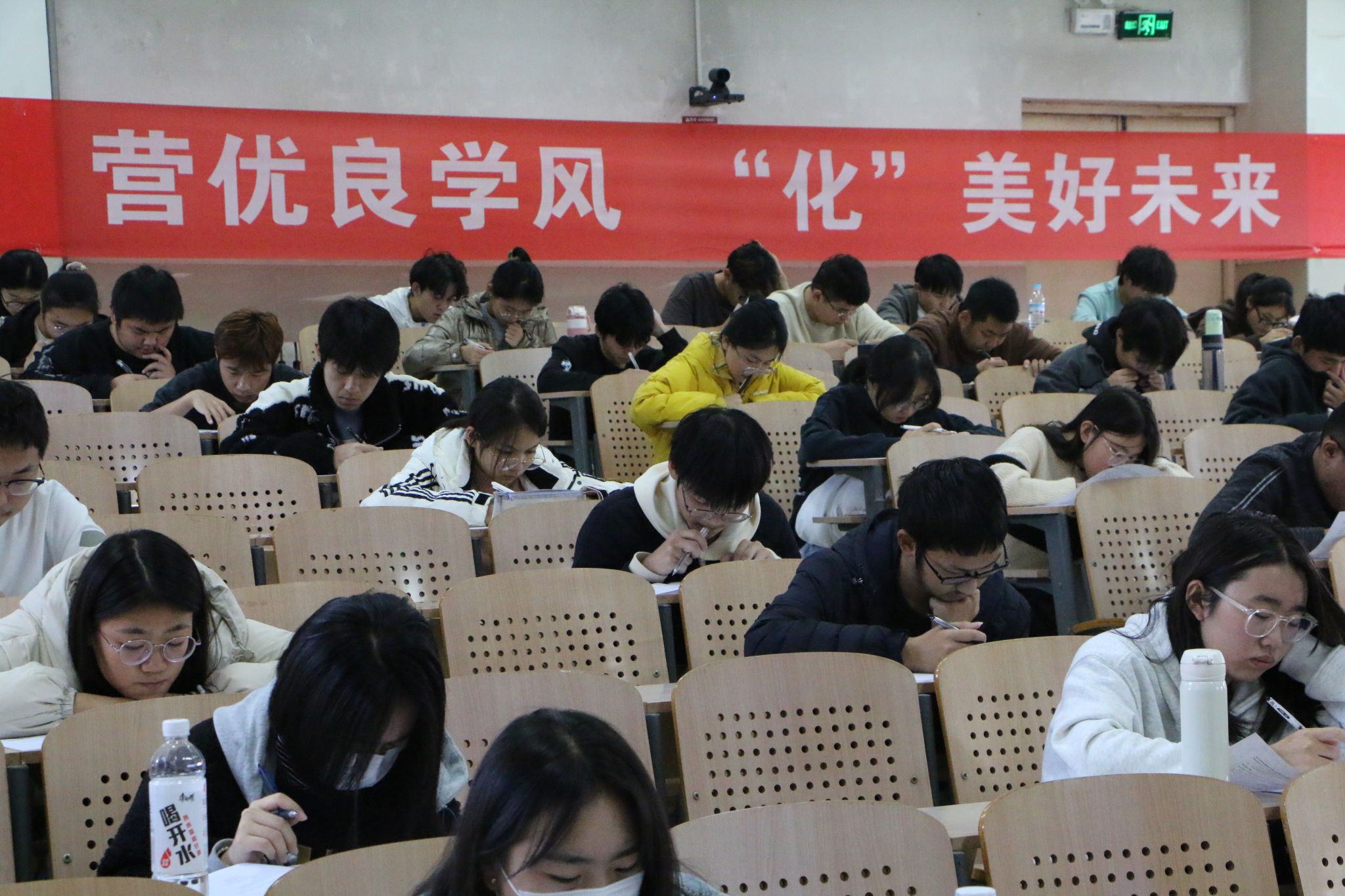 本次考试科目涵盖高等数学、大学英语以及化学相关专业课,考试过程中,同学们展现出良好的纪律意识和规矩意识,积极认真对待考试,全神贯注答题,努力发挥出自己的最佳水平。监考人员认真履行职责,严格管理考试纪律,考场秩序有条不紊。