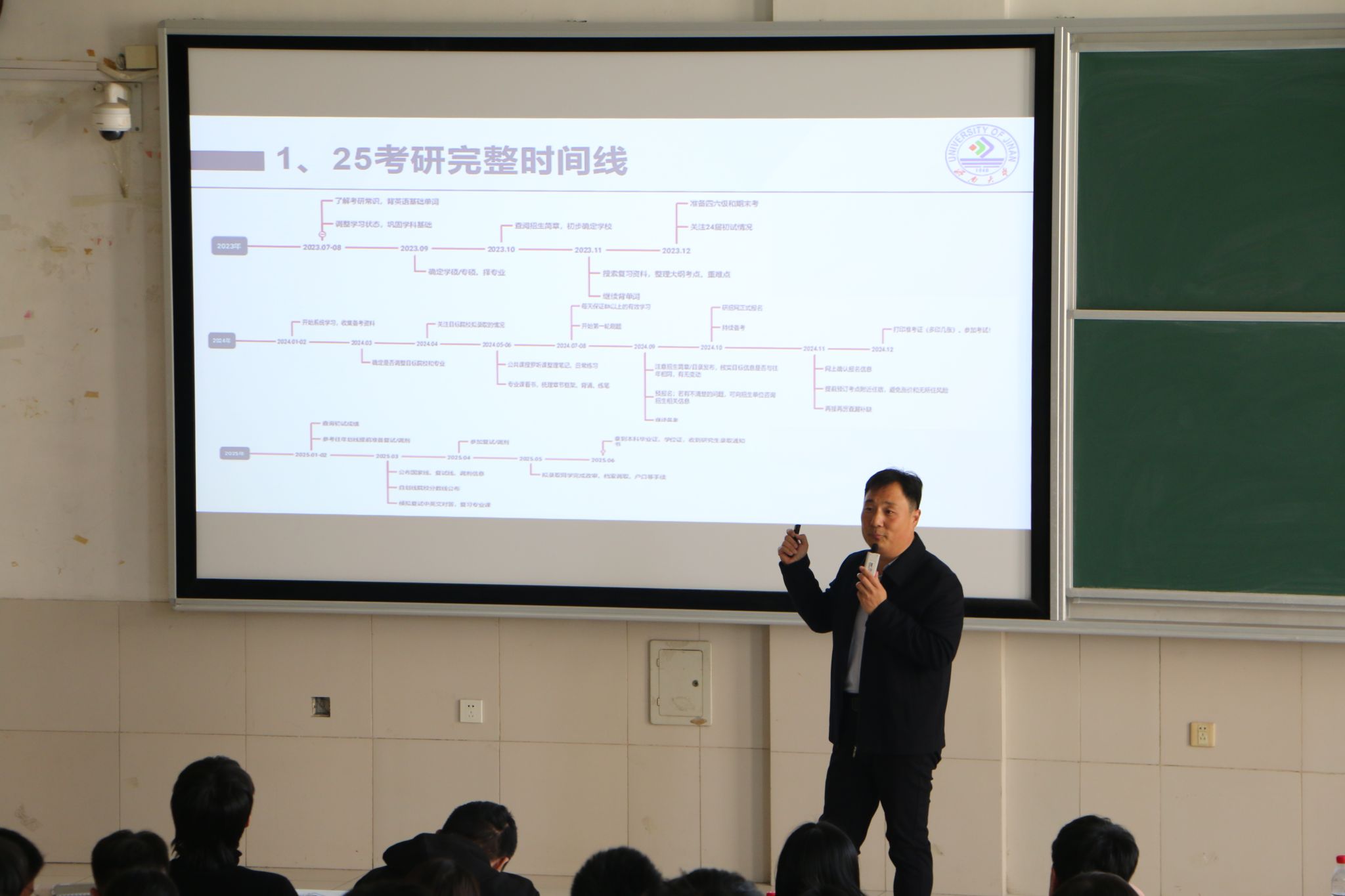 为提高大三学生考研积极性,引导学生深入了解考研政策,激发学习热情,树立考研信心,尽早制定备考复习计划。11月21日,奥门新浦京官网举办“一‘研’为定,定为‘研’一”2025年考研宣讲动员会。学院党委副书记、副院长白雪飞,全体辅导员以及2021级本科生参加,宣讲会特邀奥门新浦京官网教师马廷滨主讲。