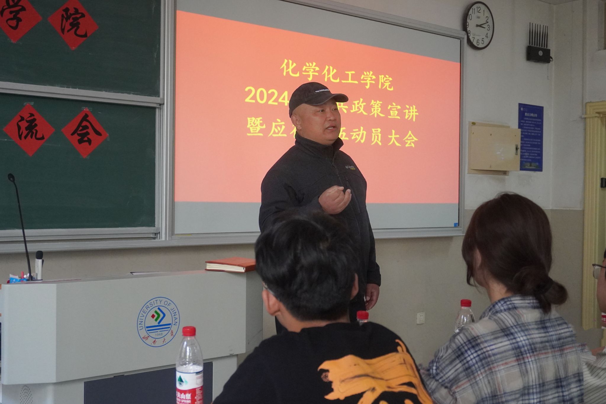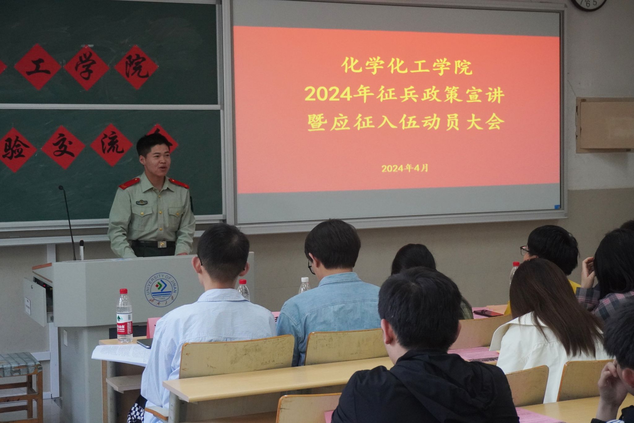 为贯彻落实国家征兵政策,扩大征兵政策宣传的影响力和辐射面,进一步鼓励和引导大学生应征入伍,4月16日和18日,奥门新浦京官网组织召开“志存高远砺青春·建功立业强军梦”2024年征兵政策宣讲暨应征入伍动员大会。学校党委武装部人武科科长李英武,学校第4届教导大队退役大学生应化2105刘杰、材料2212颜旭、化学2302卢国琰、环工2304王镇彬担任主讲人,学院学生工作办公室相关负责老师出席此次活动。