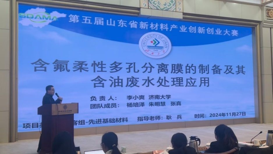 11月27日,第五届山东省新材料产业创新创业大赛决赛在济南举行。新浦京官网由耿兵教授指导,李小爽、杨培泽、朱明慧、张真同学完成的《含氟柔性多孔分离膜的制备及其含油废水处理应用》项目顺利晋级创客组决赛,并在决赛中荣获一等奖。