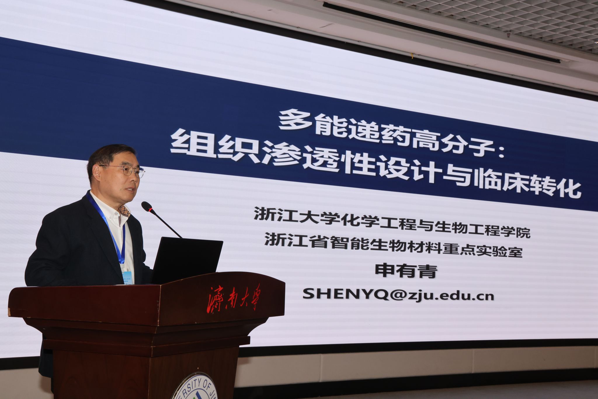 在院士报告环节,朱美芳院士带来题为“AI时代:高分子教育科技人才一体化实践”的报告。报告中,朱院士以教育为本、创新为魂、AI赋能为主线,结合个人科研与教学实践,系统阐释了产教融合在育人创新与科技突破中的重要意义,强调学科交叉及沉浸式教育对培养复合型创新人才的关键作用,并分享了教学与科研互促共进的经验体会。此外,她还就人工智能赋能教学与科研提出前瞻性思考。在与师生交流环节,朱院士针对高分子材料与工程专业的未来发展方向等问题进行了深入解答。申有青院士以“多能递药高分子:组织渗透高分子的设计与临床转化”为题作专题报告。报告中,申有青院士聚焦高分子药物递送体系面临的核心科学问题,深入阐释了如何通过精细的分子构筑与设计,实现对药物递送系统组织渗透行为的精准调控,为该领域的创新研究开辟了新路径,提供了新机遇。在互动环节,申院士回答了参会的企业界朋友问题,并针对多能递药高分子应用前景等问题进行了深入交流。报告后,奥门新浦京官网党委书记于龙泉进行了总结发言。