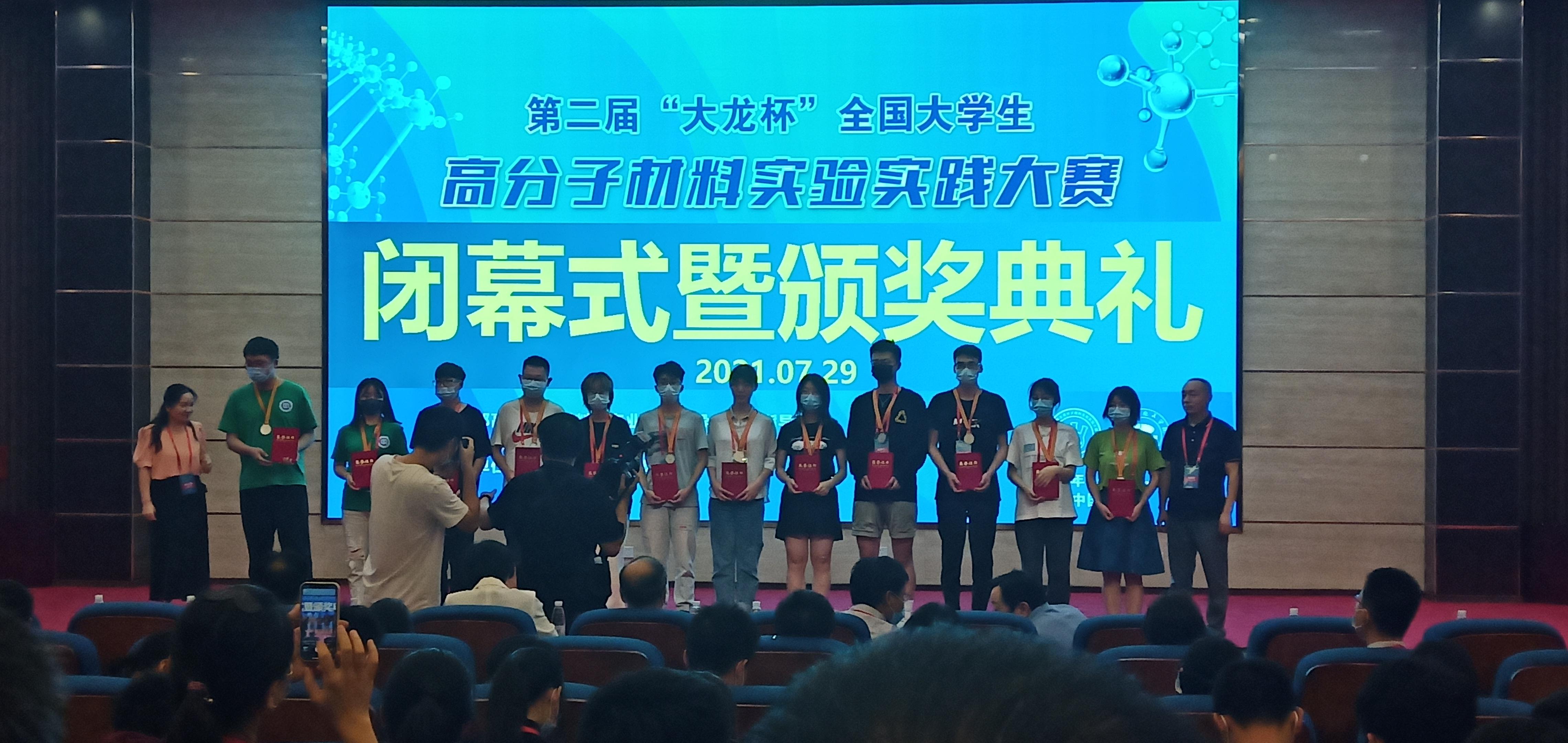 2021年7月26日至29日,由教育部高等学校材料类专业教学指导委员会主办、北京石油化工学院承办的第二届“大龙杯”全国大学生高分子材料实验实践大赛(简称“双实”大赛)在北京石油化工学院举办。大赛吸引了四川大学、天津大学、华南理工大学、东华大学、大连理工大学、北京化工大学等43所高分子材料与工程专业的300余名师生参赛。我校奥门新浦京官网高分子材料与工程专业2019级三名学子在决赛中成绩优异,杨子壮同学获得个人一等奖(最高奖),李岩和李振浩两同学分获个人二等奖;我校首次参赛即以总分第二名成绩荣获团体二等奖。