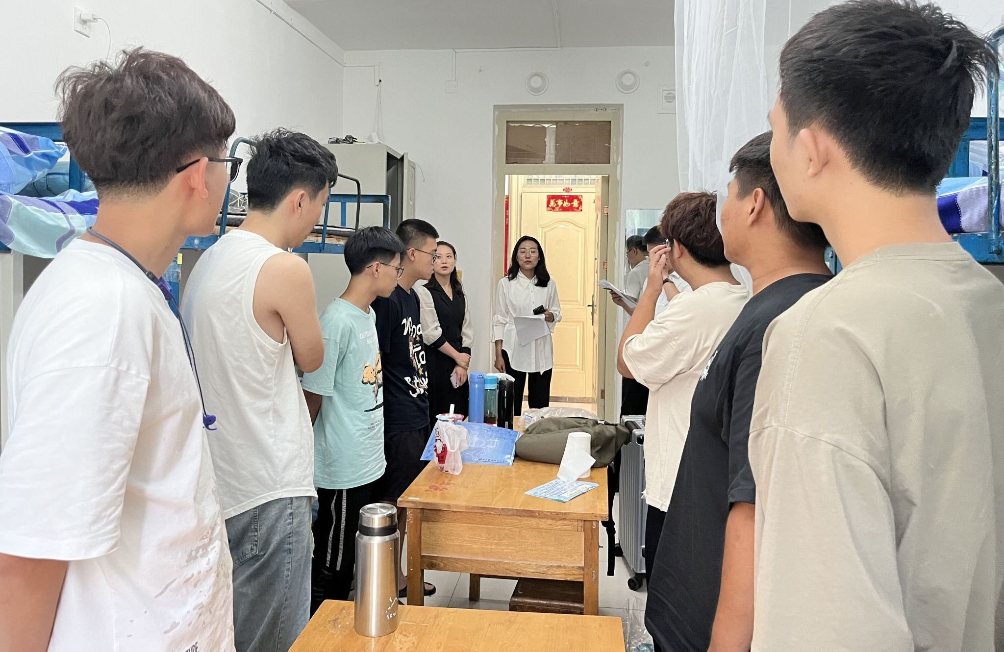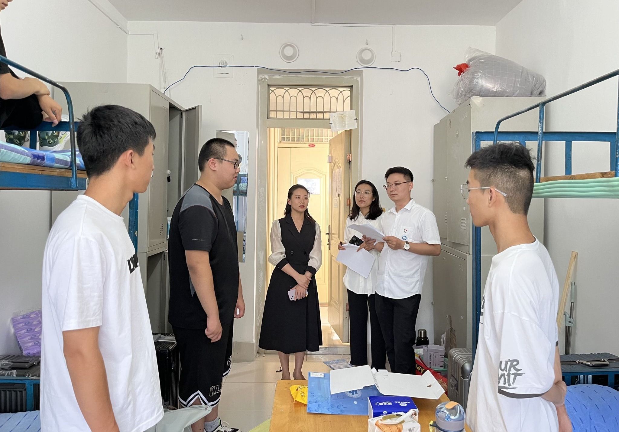 下午,学院领导和新生辅导员深入宿舍,给新同学们带去深切关怀与热情慰问。