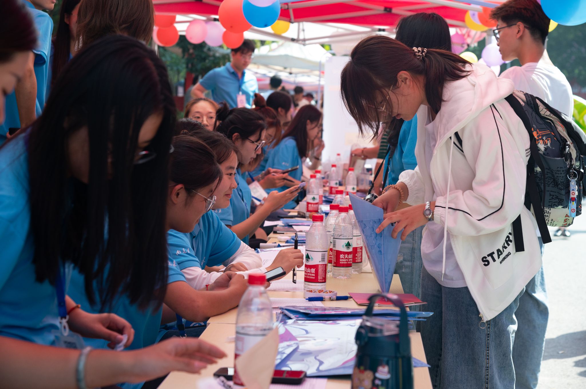 迎新现场,新浦京官网新生班助、学生骨干、学生党员及志愿者们积极参与,为新生准备并发放入学大礼包,引导并协助新生顺利完成报到,耐心解答学生及家长的疑问,保证迎新工作有序进行。各式各样的迎新标语牌、打卡相框和巨幅签名墙吸引了众多新生前来打卡拍照,记录下这一美好的瞬间。