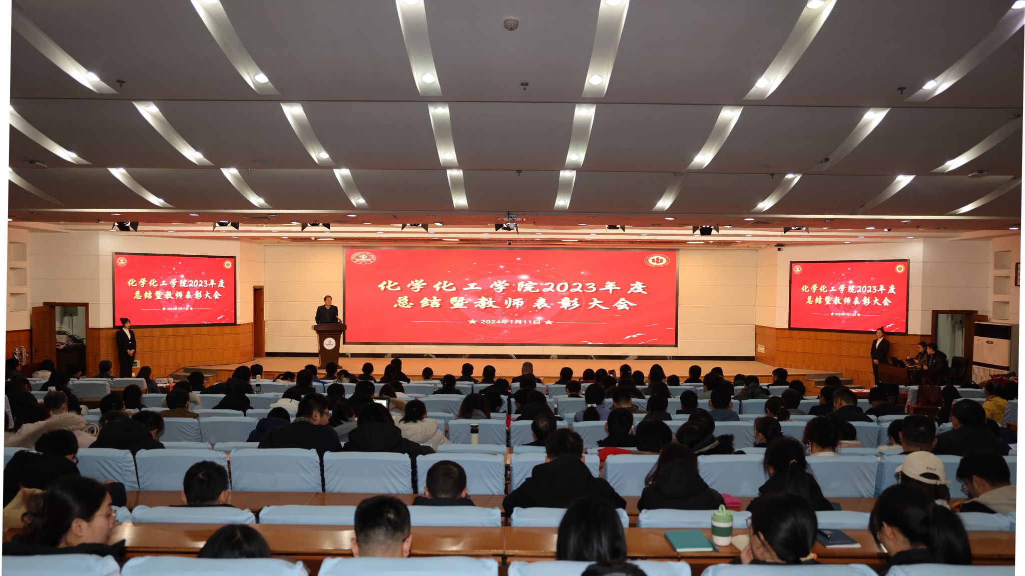 1月11日上午,奥门新浦京官网2023年度工作总结暨教师表彰大会在第一学术报告厅举行。奥门新浦京官网党委常委、副校长黄加栋,党委常委、宣传部部长贾海宁,党委学生工作部(处)、党委教师工作部、人力资源处、教务处、发展规划与学科建设处、科技处、党委研究生工作部、合作发展处、团委等职能部门负责人及学院全体教职工、学生代表参加会议。会议由奥门新浦京官网党委书记贺铭主持。