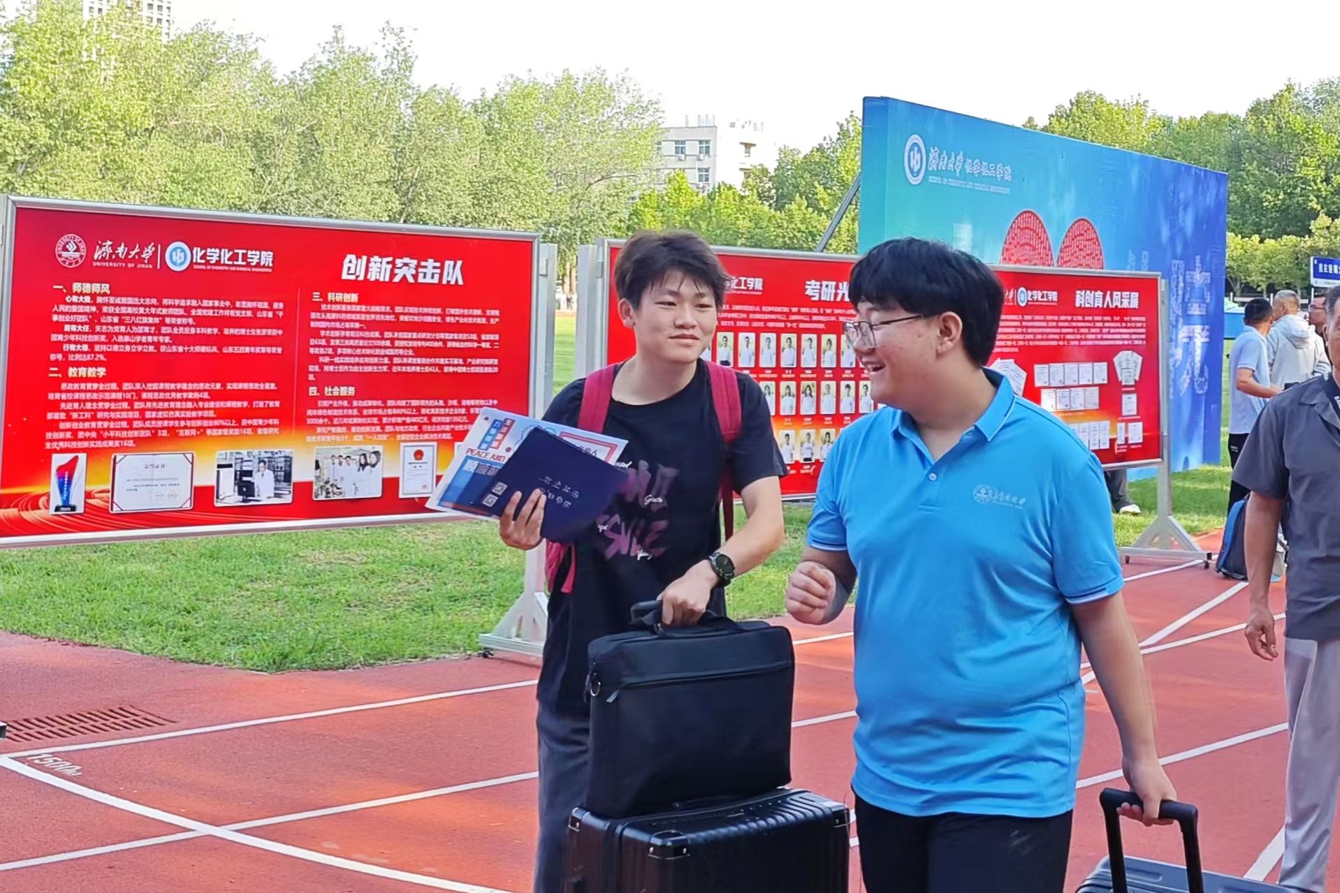 今年迎新过程中,有一批新生志愿者的身影格外引人注目,虽然自己也是初来乍到,却已迫不及待想要为学院贡献一份力量。在老生志愿者的带领下,他们一同引导新生办理入学手续,帮助新生搬运行李,解答学生家长疑惑,彰显了一批批化院学子的蓬勃朝气与青春担当。