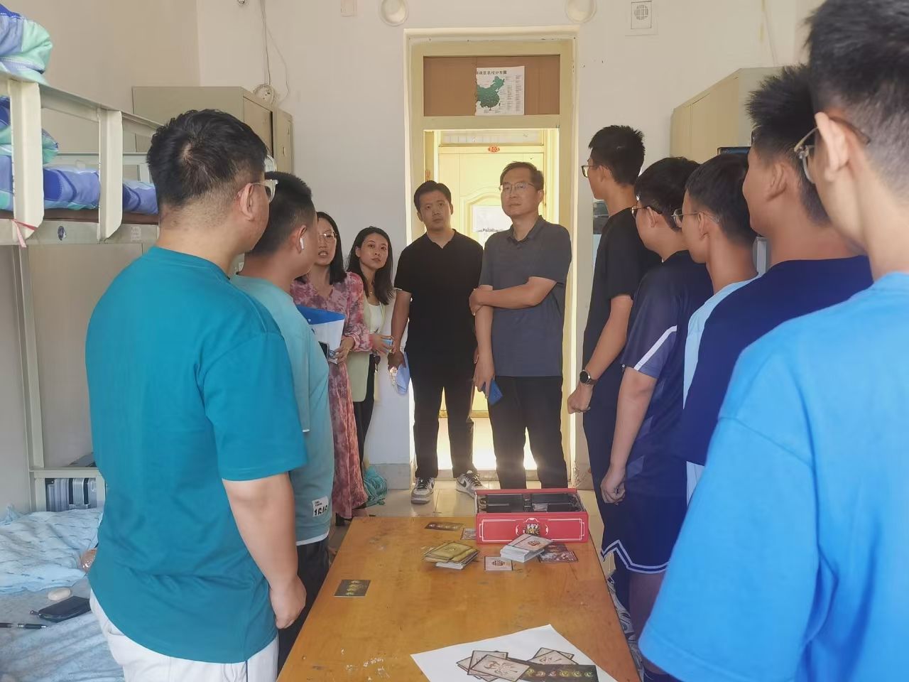 9月3日下午,学院领导、新生辅导员前往新生宿舍,与新生们亲切交流,详细询问了他们在初入大学校园后的感受和适应情况,提醒同学们遇到困难及时与辅导员、学院联系,耐心解答新生们提出的疑问与困惑,鼓励同学们尽快适应大学生活,明确学习目标,合理制定规划,积极参加校园活动,全面提升综合素质。