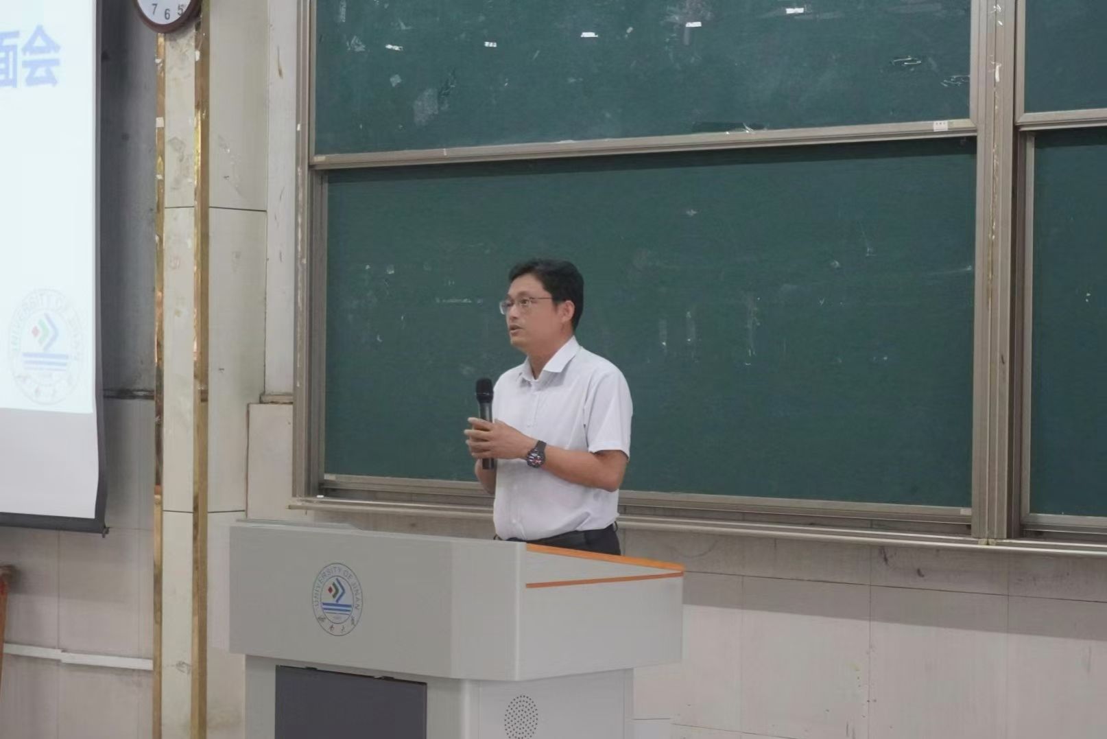 院长陈国柱向新生们开启人生新旅程、学习新篇章、生活新体验表示祝贺,向2024级新生介绍了学校的历史沿革、办学特色及学院的具体情况,并围绕学院专业情况、实验设施设备、科研论文情况、对外学习交流等方面介绍了学院的发展历程和近年来取得的突出成绩,勉励广大新生以杰出校友为榜样,在科创学术、专业学习的道路上勇创佳绩,最后,他寄语新生“同心共济,大有作为”,用理想信念照亮四年前行之路。