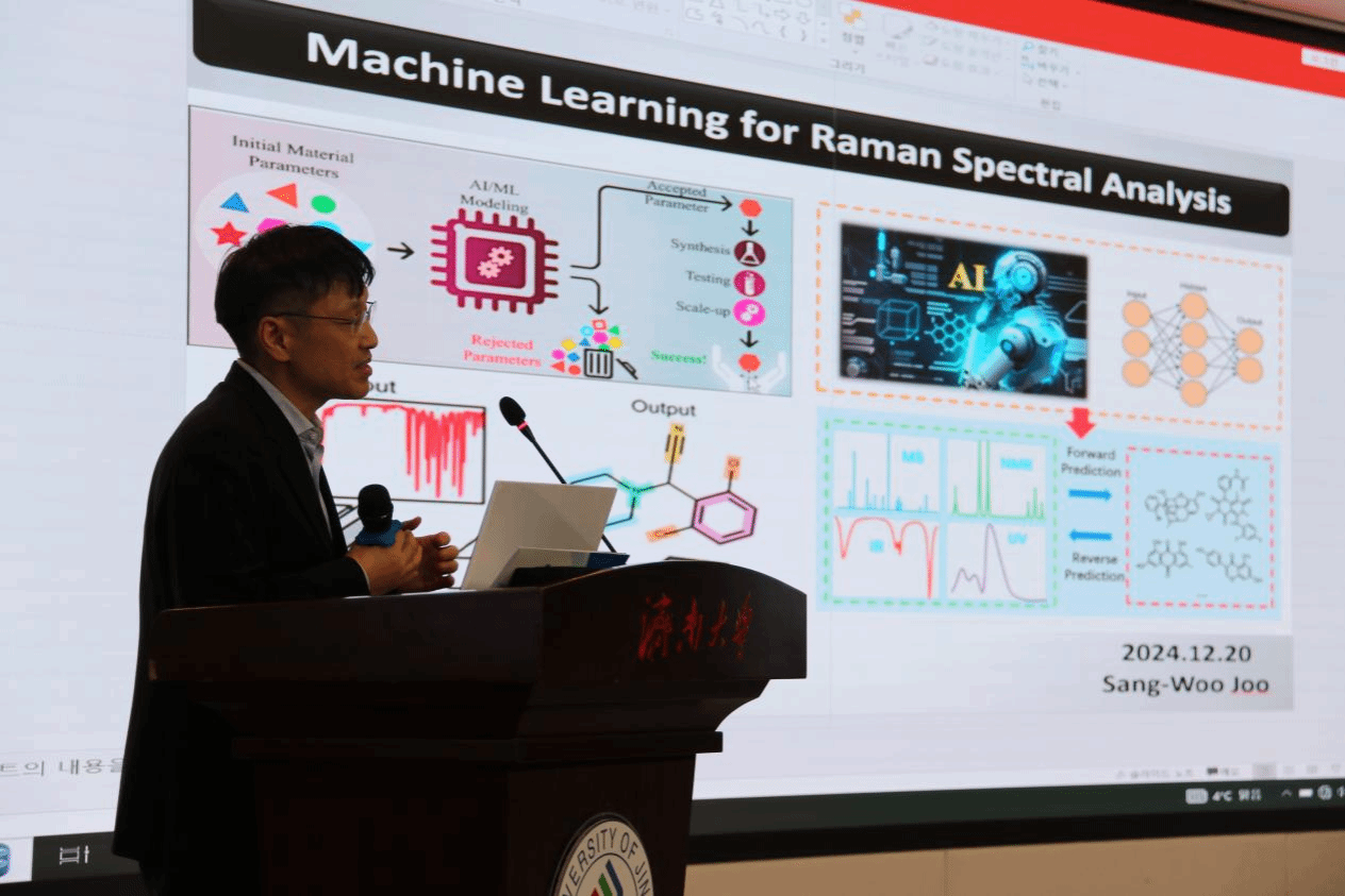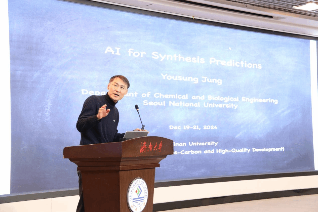 为深入贯彻落实黄河流域生态保护和高质量发展重大国家战略,服务山东省绿色低碳高质量发展先行区建设,进一步推动AI+化学领域国际人才交流与合作,12月19日-21日,由山东省科技厅、济南市科技局指导,奥门新浦京官网主办的“AI+化学促进低碳高质量发展”齐鲁国际讲堂在济南举办。奥门新浦京官网党委副书记、校长刘宗明,安徽工业大学党委常委、副校长、国家杰出青年基金获得者曾杰教授,韩国成均馆大学终身教授、韩国科学技术翰林院副院士Jin Yong Lee教授,郑州大学国家级领军人才周震教授,加拿大西安大略大学丁志峰教授,华东理工大学朱学栋教授,中国科学研究院化学研究所曹昌燕研究员,韩国首尔国立大学Yousung Jung教授,韩国崇实大学Sang-Woo Joo教授,韩国成均馆大学Jong Hyeon Lim博士等专家和领导出席大会,来自山东大学、齐鲁工业大学、曲阜师范大学、枣庄学院、山东金城医药集团、济南天正环境科技有限公司等10余家高校、企业的代表,以及奥门新浦京官网科技处、国际合作与交流处、奥门新浦京官网负责人及师生代表近300人参加了本次会议。会议开幕式由奥门新浦京官网党委常委、副校长张勇主持。