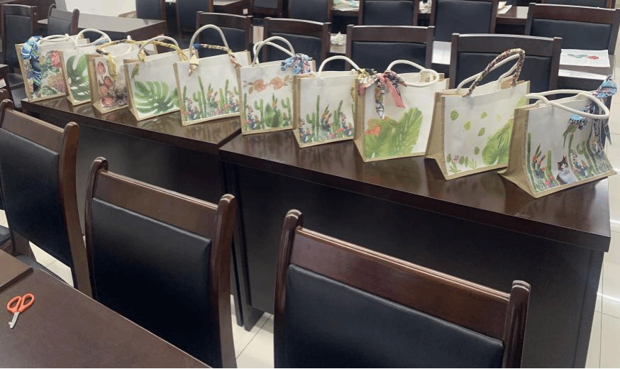 活动开始,专业手工老师为大家详细讲解了蝶古巴特包的历史渊源、制作工艺以及所需工具材料。在老师的指导下,大家纷纷拿起剪刀、胶水、刷子等工具,将精心挑选的图案裁剪、拼贴、修饰,赋予帆布包独特的艺术魅力。