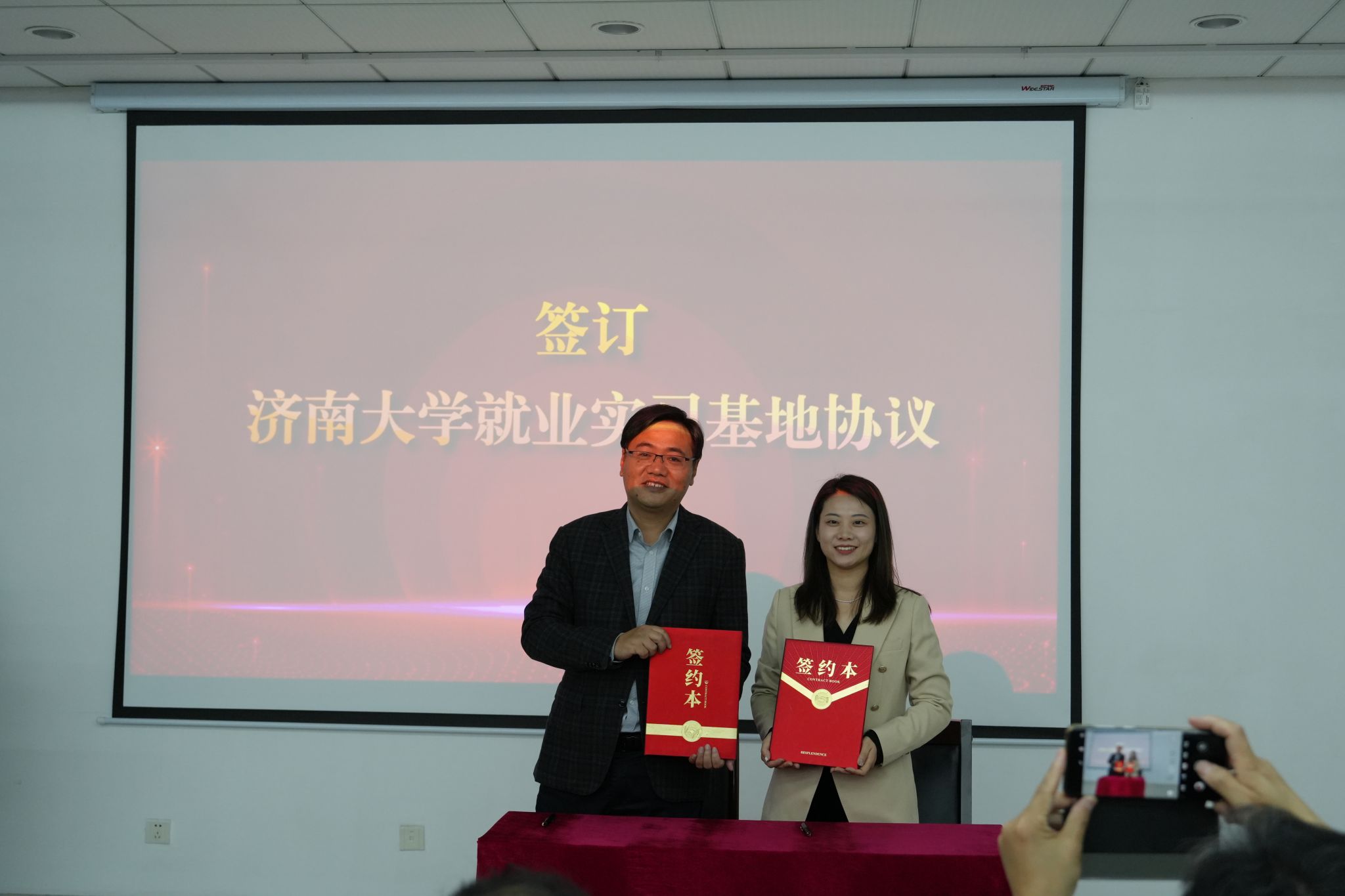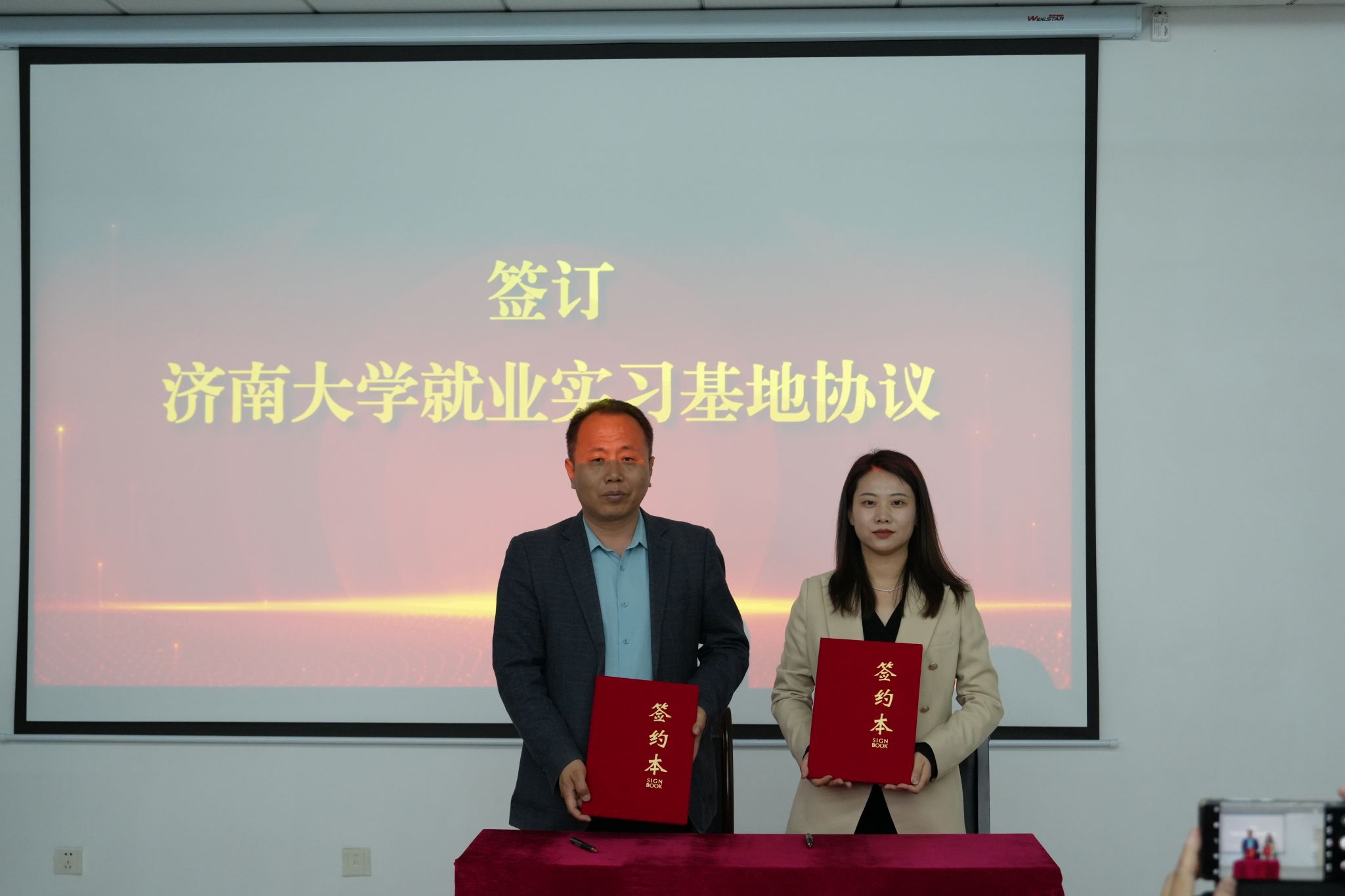 座谈会上,双方围绕人才引育共享、科技成果转化、共建产业创新研究院、校地协同高质量发展等议题展开深入探讨。与山东齐氟新材料有限公司、澳宏(山东)环保材料有限公司签署《奥门新浦京官网就业实习基地协议》,并为“奥门新浦京官网就业实习基地”揭牌。郑祥军为氟化学化工材料重点实验室主任耿兵教授颁发“招才引智大使”聘书。