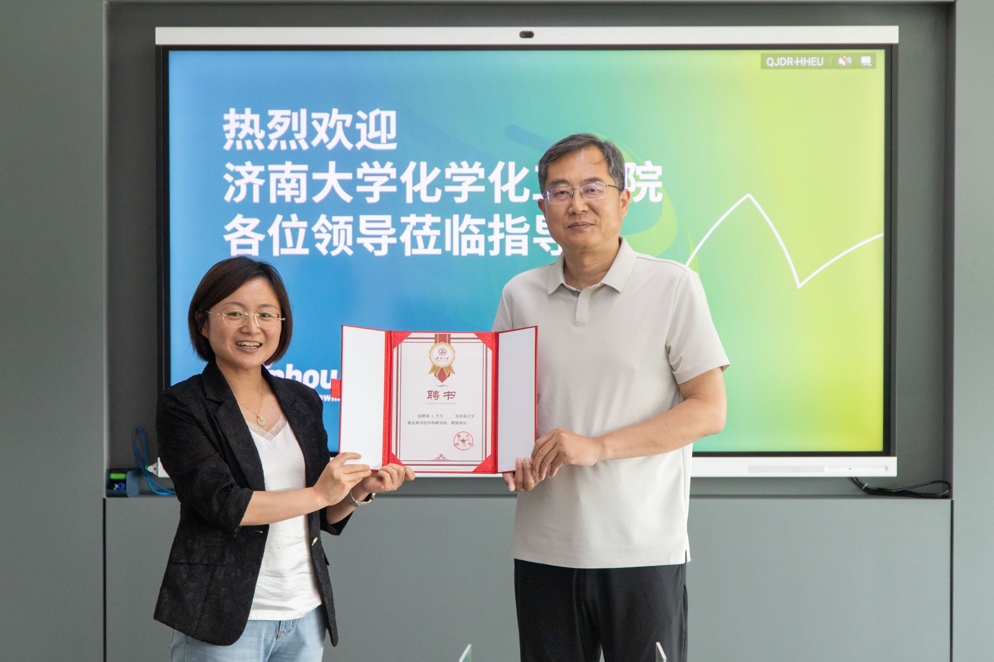 为促进校企资源对接,搭建人才共育平台,双方签署《奥门新浦京官网毕业生就业实习基地》协议并揭牌,贺铭为润丰化工股份有限公司招聘经理王艳艳颁发奥门新浦京官网“就业导师”聘书。
