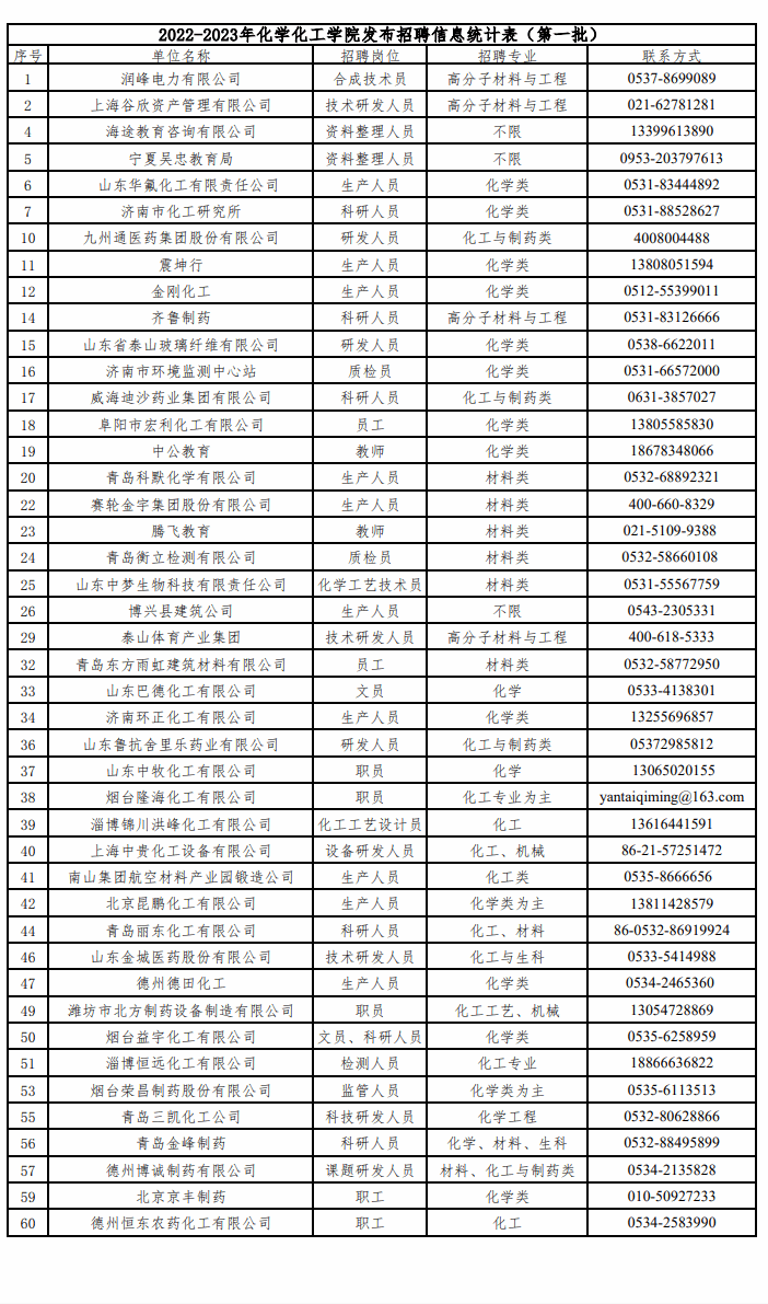 2022-2023年奥门新浦京官网发布招聘信息统计表(第一批)